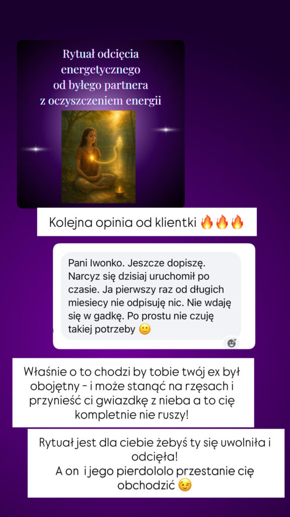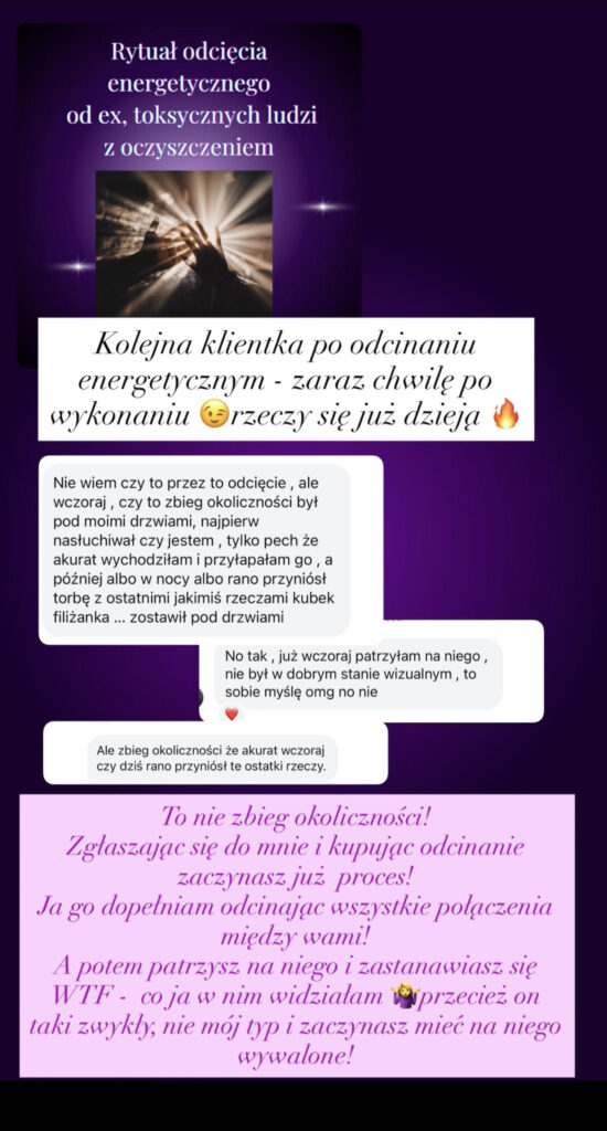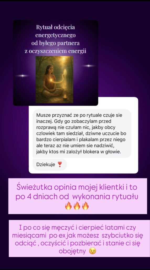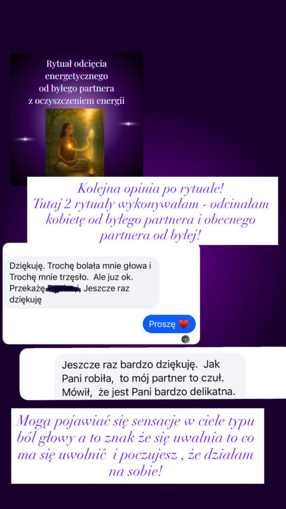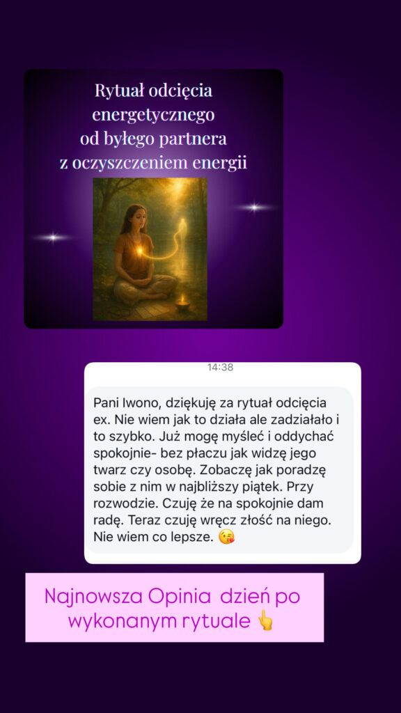 Moja klientka wysłała mi to zaledwie 4 dni po wykonanym rytuale odcięcia od ex- u niej jeszcze obecnego partnera bo nie mogła od niego odejść!!!